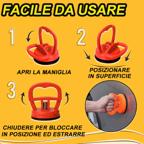 Operazione semplice: Questo pratico sollevatore a ventosa è dotato di robuste maniglie di bloccaggio con un'azione di pompa a corsa singola per comodità. Chiunque può riparare le ammaccature seguendo i semplici passaggi operativi.